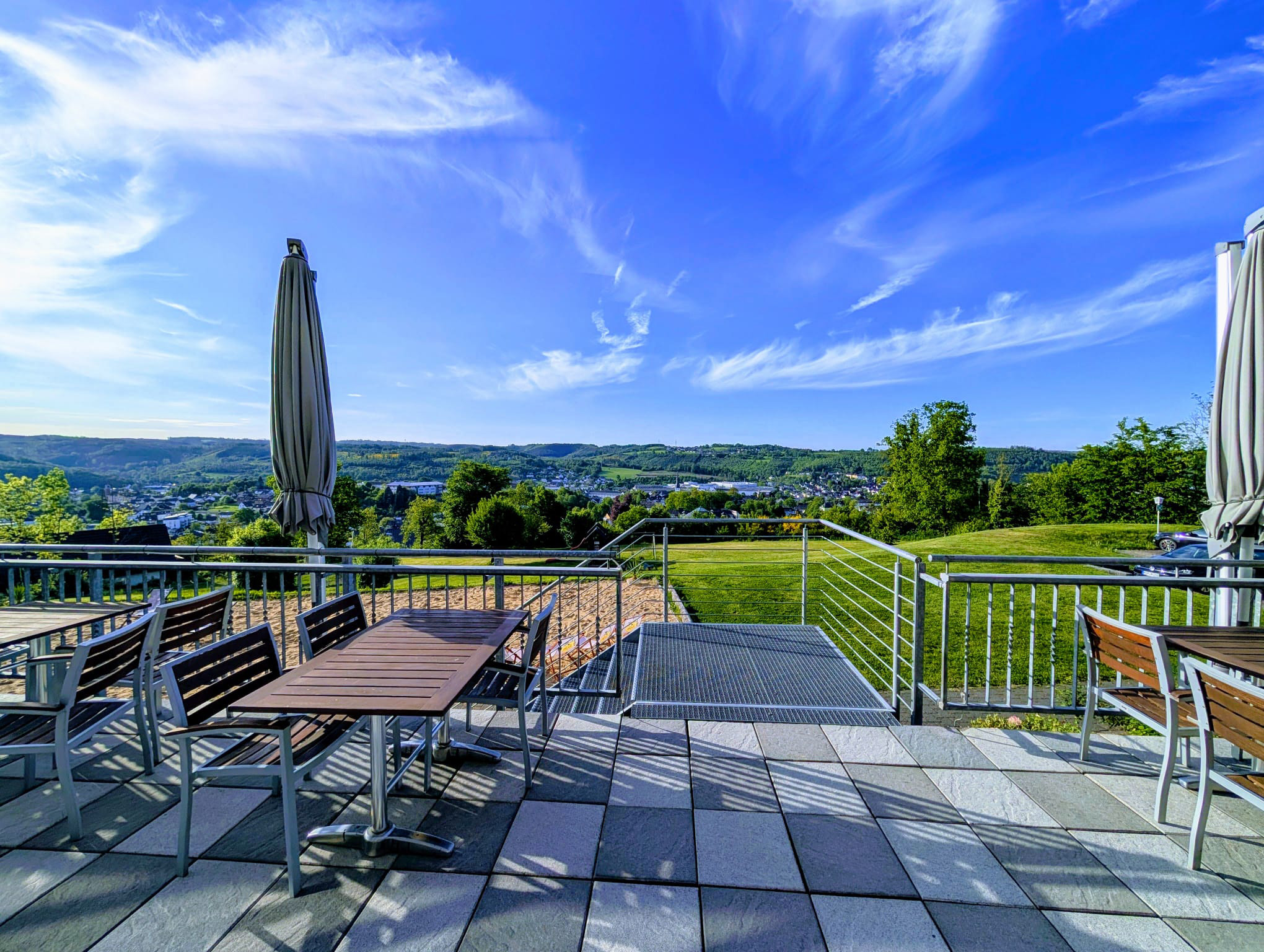 Genießen Sie auf unserer herrlichen Panorama-Terrasse bei wundervoller Aussicht über Bergneustadt und auf das Oberbergische Land, unsere geschmackvolle Küche, eine Auswahl an Kaffee und Kuchen oder einfach nur einen fruchtigen Cocktail.